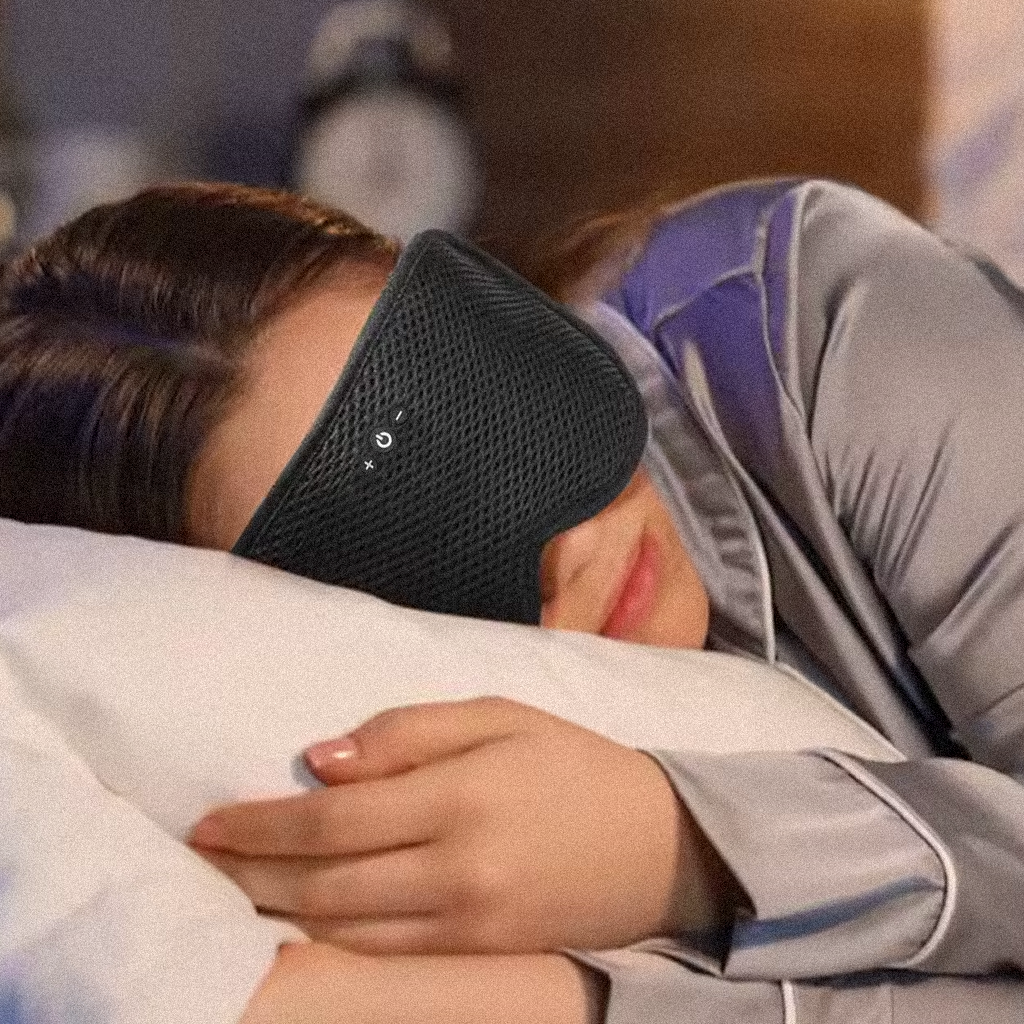 SOMNUS SOUND blocks 100% of light while streaming your perfect sleep soundtrack, finally giving your brain the complete darkness it needs to produce natural melatonin for deep, restorative sleep.